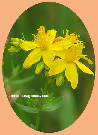There are several species of St. John’s wort: H. perforatum is the officinal species in France, it is very common, and recognizable by its bouquet of yellow flowers (well developed in June around St John, hence its common name st john wort ) which, when crushed, stain the fingers red.