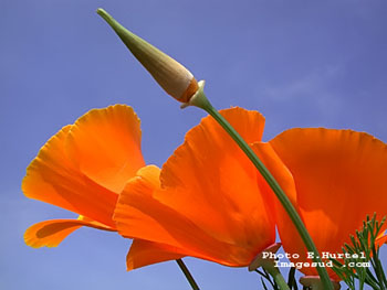 La AMAPOLA DE CALIFORNIA, cuyo nombre científico, ESCHSCHOLTZIA CALIFORNICA,PAPAVERACEAE, con una ortografía muy complicada, hace honor a un ilustre botánico ruso, es originaria de las llanuras y zonas costeras de California donde se encuentra en terrenos bastante secos, áridos o arenosos.