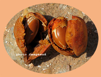 Las almendras del fruto contienen un aceite de calidad dietética y cosmética, explotado de manera comunitaria por cooperativas mayoritariamente femeninas.