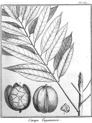 El género Carapa es tropical y de las muchas especies descritas, solo dos se usan comúnmente por sus propiedades medicinales.