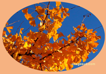 El ginkgo, originario del Lejano Oriente y contemporáneo de los dinosaurios, se cultiva por su atractivo aspecto y por sus hojas que contienen sustancias farmacológicas que protegen los vasos sanguíneos y favorecen la circulación sanguínea.